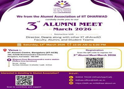 Indian Institute of Technology DHARWAD(IITDH) is one of the third Generation (3-G) IITs, which were established by the Ministry of Education (MoE), Government of India (GoI)....