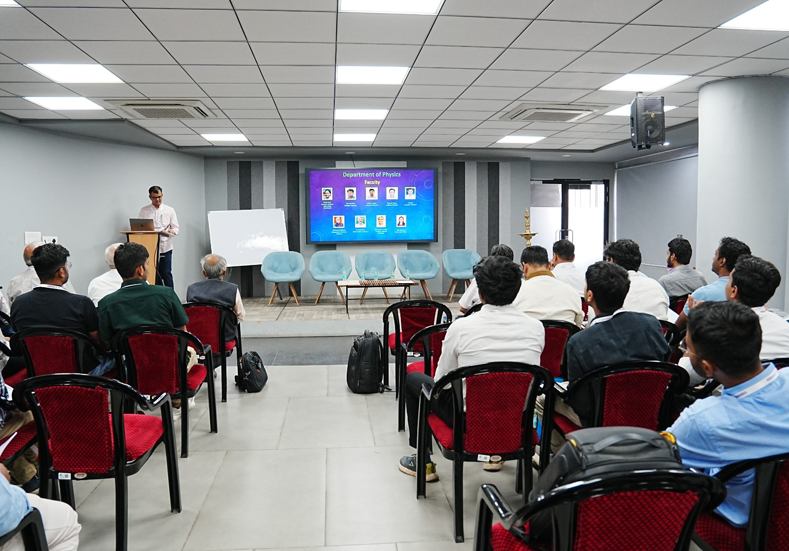 Prof. Rajshekar K, Prof. Abhijit Kshirsagar, Prof. HIRANYA DEKA, and Prof. Prabhu R respectively from the Departments of Computer Science & Engineering (CSE), Electrical, Electronics and Communication Engineering (EECE), Mechanical, Materials and Aerospace Engineering (MMAE), and Physics, presented updates on academic and research developments.
