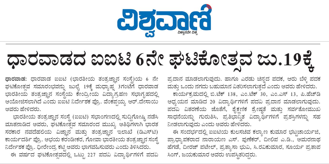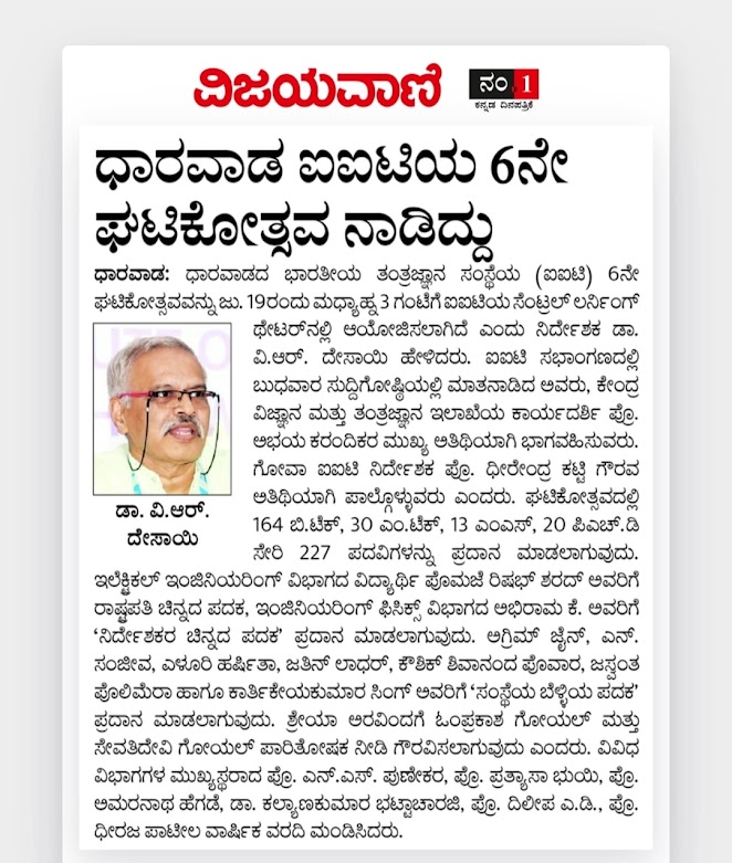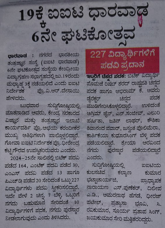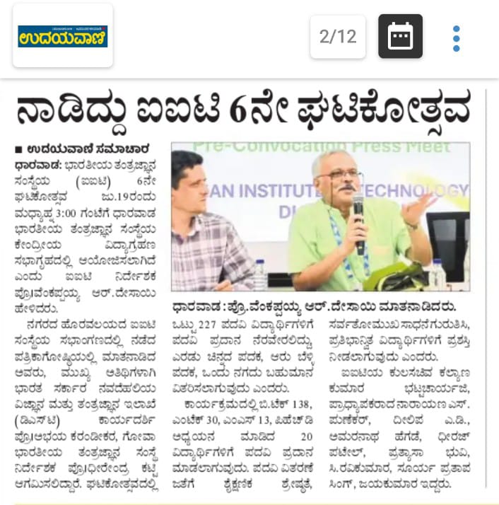 Media coverage of the press conference held at IIT Dharwad