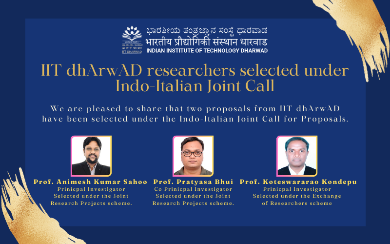 IIT dhArwAD researchers selected under Indo-Italian Joint Call-We are pleased to share that two proposals from IIT dhArwAD have been selected under the Indo-Italian Joint Call for Proposals.